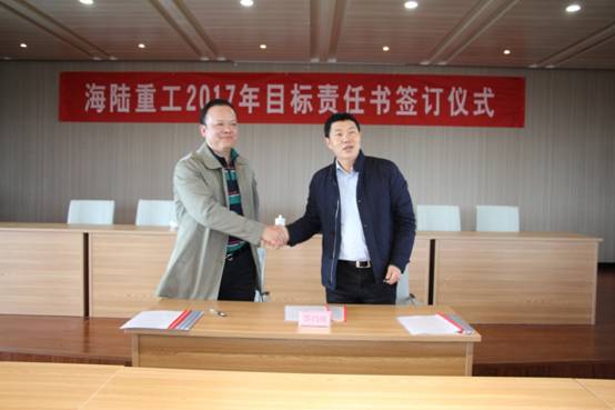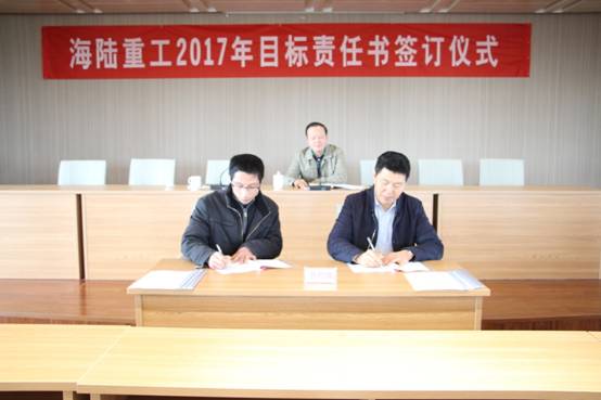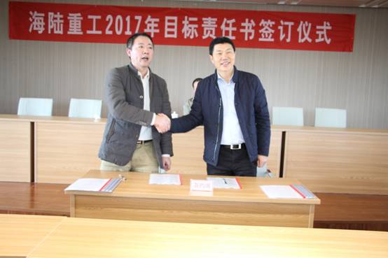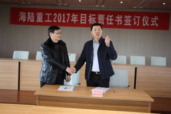 2月6日,新春伊始,為實現(xiàn)公司的持續(xù)快速發(fā)展,順利完成年度經(jīng)營計劃,貫徹落實公司績效管理政策, 2017《績效目標責任書》的簽訂儀式。責任書明確了公司事業(yè)部和責任主體的權利與義務,并對各事業(yè)部經(jīng)營與管理任務指標進一步量化了考核標準,在公司原有考核獎勵機制、績效考評等基礎上進行了優(yōu)化與改進。會上董事長徐元生做了重要講話,徐總指出一年之際在于春,2017年各部門目標責任書的簽訂,對于公司的未來發(fā)展,意義非凡。目標責任書的簽訂,只是一個起點,這個起點是理性的,務實的,也是富有激情的。最后,徐總希望簽約的各位領導干部壯志在我心,揚鞭在腳下,快速地行動起來!用樂觀自信的態(tài)度,拿出全力以赴的精神,充分展現(xiàn)自己的才能,注重上下團結協(xié)作,發(fā)揮自己聰明才智,創(chuàng)造出海陸重工2017年新的輝煌。