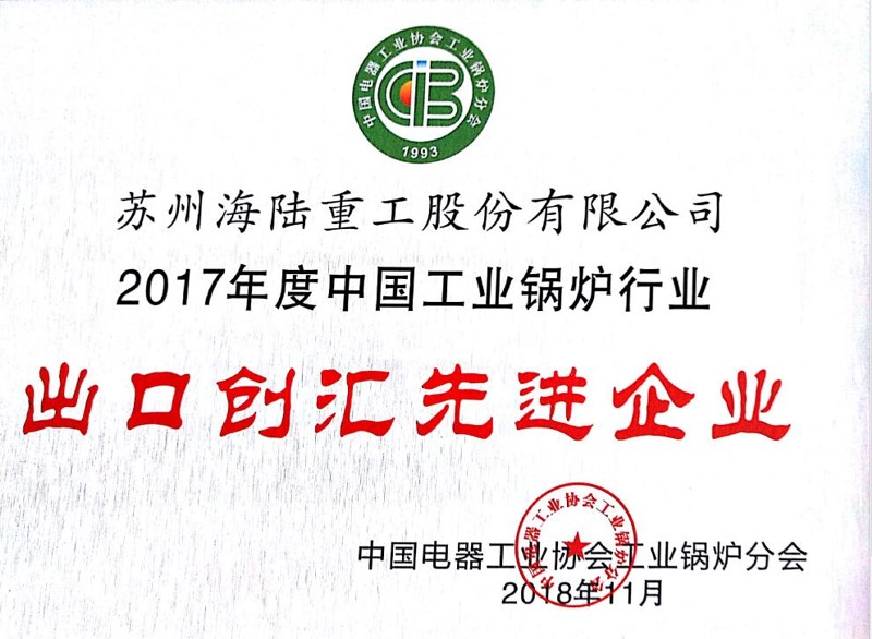 “2017年度中國(guó)工業(yè)鍋爐行業(yè)出口創(chuàng)匯先進(jìn)企業(yè)”
