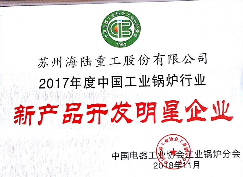 “2017年度中國(guó)工業(yè)鍋爐行業(yè)新產(chǎn)品開發(fā)明星企業(yè)"